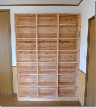 サイズ自由、オール無垢木材の作りつけ収納棚を格安で製作します。
