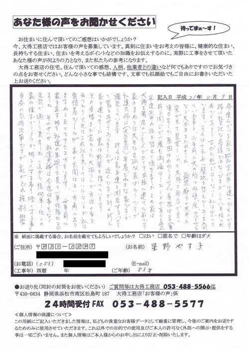 これからもまた家のことで何かありましたらよろしくお願いします。