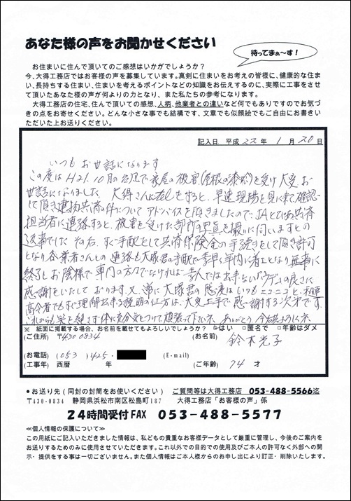 インターネットで調べていたら、「大得工務店」という所がよかったとあり、思い切って電話をしました。