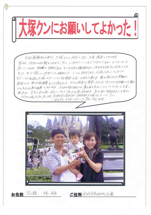 今回新築するにあたり、大塚さんに担当して頂き大変満足しております。
