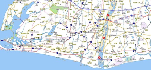 天竜川沿いに赤いマークが3か所あるのが分かりますか?