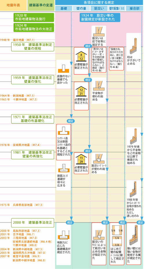 建物の基本的な決まりを決める建築基準法はこのような感じで度々改正されています。浜松市と磐田市は津波の心配があるものの、地震への備えの重要性は誰もが感じるところだと思います。この機会に家の耐震性を見なおしたほうがいいかもしれませんね。