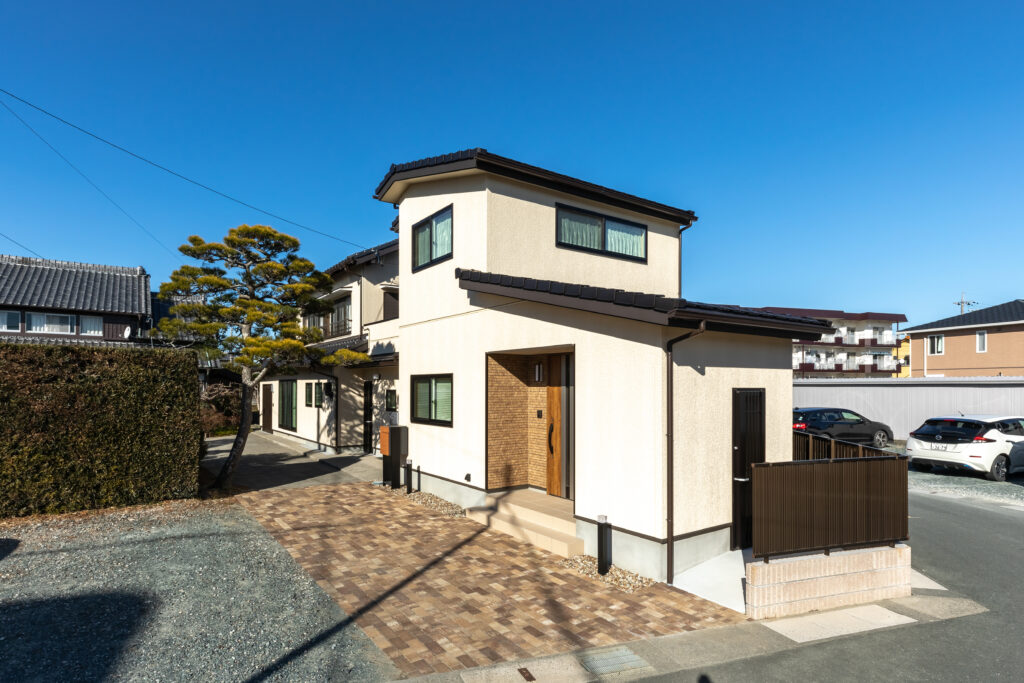 既存の建物は32年前に主流だった和風住宅のテイストでしたが、お客様のご希望は洋風のテイストだったため、増改築部分を含めて色味を統一するなどして既存部分と増築部分でなるべく雰囲気が近くなるように外観のご提案をさせていただきました。