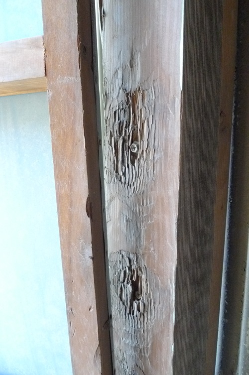 屋根の庇の裏も水が入り込んでボロボロになってしまいました。屋根材と屋根の鼻先の部材(鼻隠しと言います)もかなり被害が出ています。