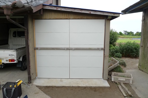 浜松市南区で、トラクター小屋のドア交換リフォーム