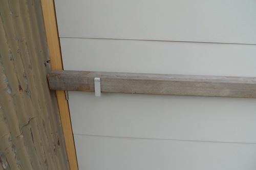 また、外部の金物に鉄のビスを使用しているため錆びてしまっています。右は柱を取り付けていた小屋下地です。建具は1枚が30キロ近くあり、長い年月を支える丁番はかなりの強度が必要となります。 十分な強度が無かったため、衝撃で下地板(胴縁)が折れてしまっています。