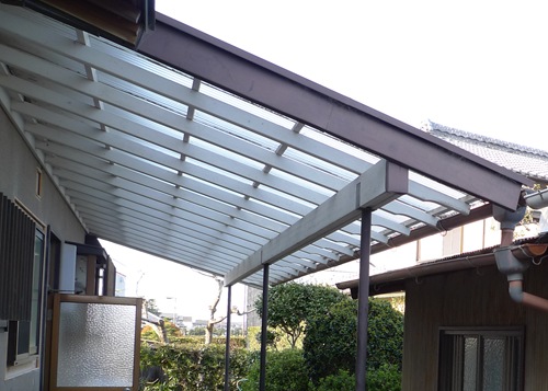 完成しました。手前が新しいテラス屋根、奥が古いテラス屋根です。