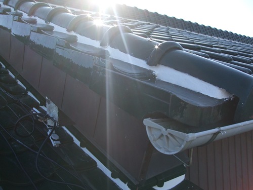 屋根馬と呼ばれる部分が錆びてきていましたので、錆落とし、錆止めをしてからシルバーで塗装しています。これでしばらくは持ってくれると思います。