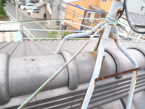 外壁の塗装工事をさせて頂く時に屋根を点検したところ、このアナログアンテナがかなり老朽化している事が分かりました。