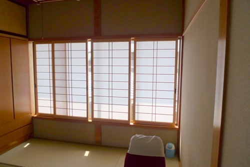 こちらの襖障子も新しくしました。障子紙ももちろん新しいものですから、入ってくる光も明るく感じますね![]()