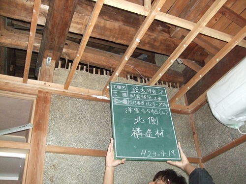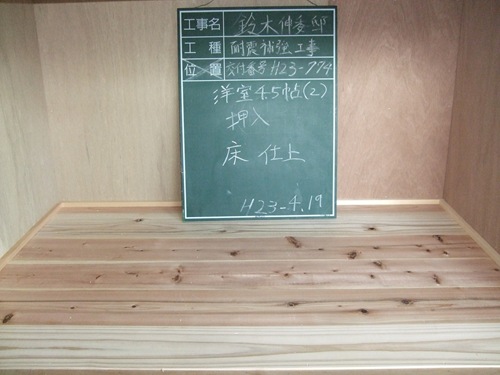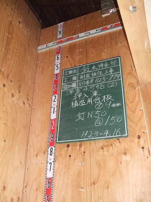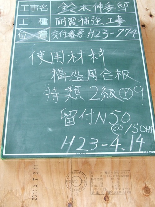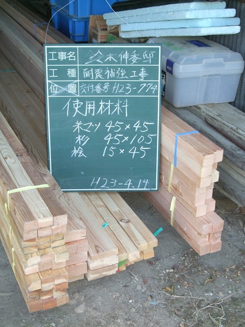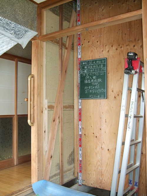 下地などに使う木材や合板もしっかり写真で残します。補助金を受ける場合はこのような写真も市に提出します。