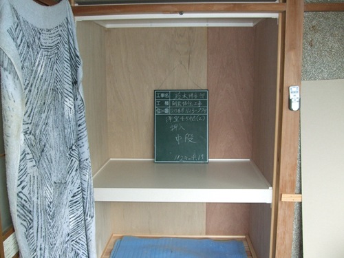 押入の隣の壁の仕上げも完成しました。工事部分だけの仕上げにしたので既存部分と少し色が違いますが、家が強くなって気分一新です。