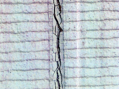 これはサイディングの目地であるコーキングが劣化してヒビが入っている様子です。この状態になるとコーキングはカチカチに固くなり、ひび割れた隙間から雨などの侵入を許してしまいます。
