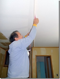 クロス工事は、クロスを張る前に下地を平らになるようにしていかなければなりません。そのため、クロスを張る前にプラスターボードの継ぎ目にパテを塗り込んで、表面平らになるようにキレイに慣らしていきます。