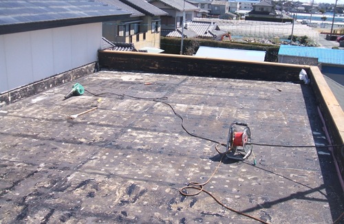 また、古い防水層の成分が新しい防水層にしみてくる事なども心配でしたので、古い防水層は完全に取ってから新しい防水層をつくる内容でご提案しました。