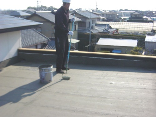 屋上の雨漏り修復リフォーム 1層目の防水塗膜工事