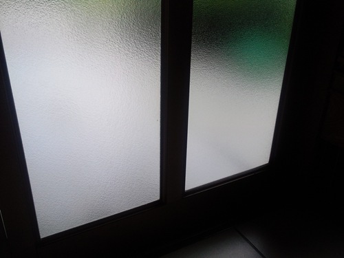 こちらのガラスは型ガラスと言って、表面に模様があって中が見えにくいガラスを使っています。交換しない部分と模様が違うのが嫌だと、お客様も心配されていたので、お見積りの際にガラスのサンプルを持って行って事前にご覧いただきました。