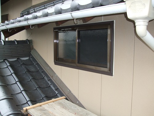 庇(ひさし)の上の外壁部分は元々の外壁をキレイに復旧しました。使えるものはなるべく再利用して、余分な費用がかからないようにします。