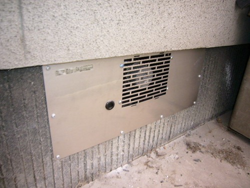 ただ、リフォームの場合はこのようなパッキンなどを入れる事は現実的に無理なので、右の写真のような電気式の換気扇を取り付けて強制的に換気をすることもあります。電気代がかかるものの、基礎の構造によっては自然通気ではできない換気も可能になりますので、湿気に悩む方は検討したい商品です。