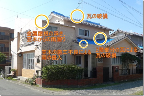 棟の瓦は北側や1階部分に風で飛ばされてしまっています。